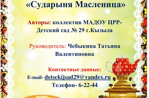 26 февраля прошли Масленичные гуляния на площади Арата. В конкурсе «Масленичное подворье» участвовали детские сады города Кызыла. Комиссию мы встречали частушками и песнями, игрой под баян, угощениями. Наш детский сад № 29 в этом году занял 3 место!